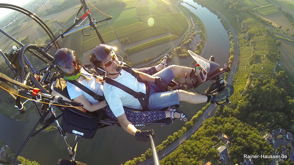 Wir fliegen zur Sicherheit mit Helmen. Für "normale" Kopfgrößen steht ein Helm mit Headset zur Verfügung. Wenn sie einen eigenen Motorrad Helm besitzen, bitte am Flugtag mitbringen.