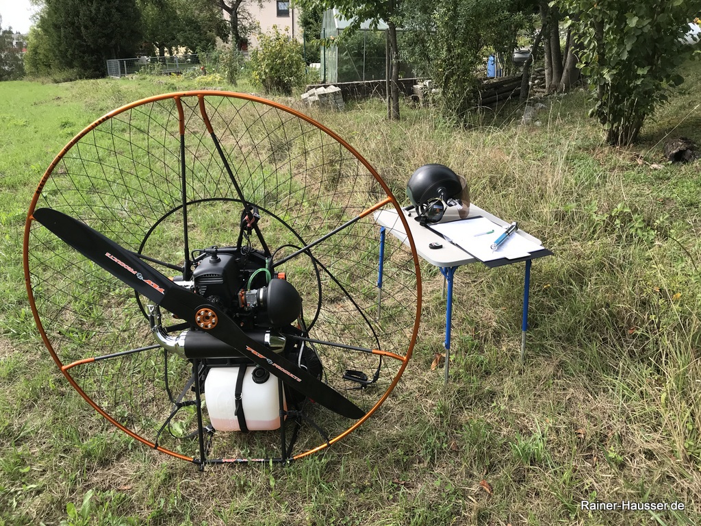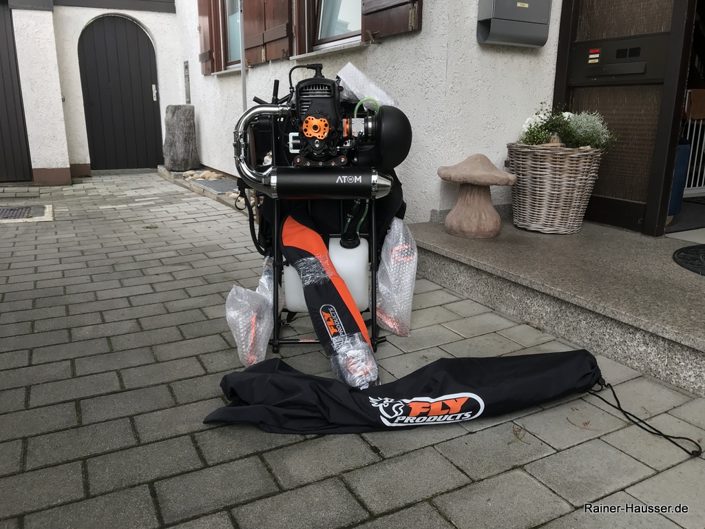 Ich habe dann einen leichteren Fly Products Eclipse mit einem Atom 80 Motor erworben. Der wiegt mit Gurtzeug nur 19 kg. Mit einem extra leichten Rettungsschirm ist das Ganze System super leicht zu handeln.