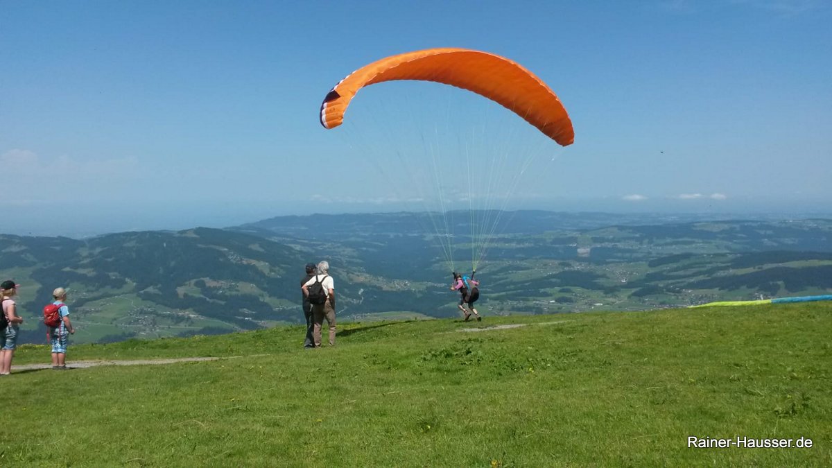 Erster Start mit dem Neuen in Andelsbuch, Niedere. Der Schirm ist echt easy zu starten. Macht es Flugschülern wirklich einfach. Im Vergleich zu meinen letzten Schirmen ist die Streckung echt gering. Beim Blick nach oben ist das schon etwas befremdlich. Der Kappendruck und Steuerdruck ist erheblich. Fast wie beim guten alten Jaguar. Dafür ist die Kappenstabilität halt auch so wie beim Jaguar. Das relativ dicke Profil zusammen mit der Streckung begrenzen natürlich die Top-Speed. Ist halt Physik. Inzwischen ist der Epsilon 8 auch zwei Jahre auf dem Markt. Da sollte es auch so langsam gebrauchte geben in der Preisklasse wie der gebrauchte Alpha. Auch der Epsilon ist ein Schirm für Berg und Motor. Das wär noch was...